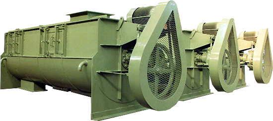 Este tipo de mezcladoras está indicado en aquellos procesos de mezcla continua de productos sólidos, pastosos, pulverulentos o granulados en los que se busca un mezclado no muy homogéneo o humedecer el producto.