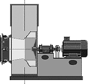Ventilador de doble aspiración provisto de un marco integral que proporciona rigidez a todo el conjunto motor – ventilador. El marco se ancla sobre una estructura de hormigón en la que va alojada la parte inferior de la carcasa del ventilador.