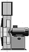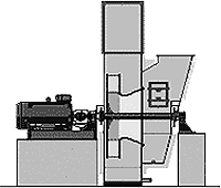 Ventilador de simple aspiración colocado sobre una estructura elevada formada por machones de hormigón. Esta es una disposición de gran sencillez y muy fiable. Los soportes de rodamientos se colocan sobre pedestales de altura reducida y el motor se fija sobre un marco o directamente sobre el hormigón. La carcasa dispone de un marco propio para su anclaje al suelo.