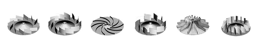 El rendimiento de un ventilador depende en gran medida del diseño del rodete y de sus álabes. Nuestros diseños han sido comprobados para otorgar el máximo rendimiento posible para cada tipo de pala. Teniendo en cuenta el ángulo de las palas con relación al giro del ventilador, se distinguen tres familias de rodetes: